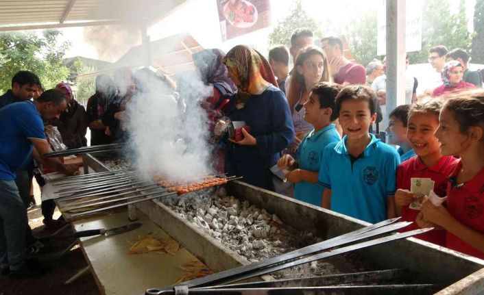 Adana’nın Kozan ilçesinde bir ilköğretim okulu bahçesinde düzenlenen yöresel lezzetler etkinliğinde mangallar yakıldı, öğrenciler kebap yemek için sıraya geçti.