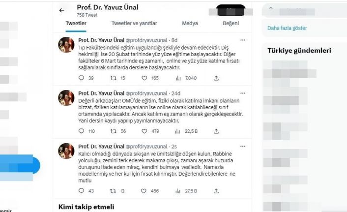 OMÜ Rektörü Prof. Dr. Yavuz Ünal, üniversitedeki eğitimin nasıl olacağı konusuna sosyal medya hesabından yaptığı paylaşım ile açıklık getirdi. Derslerin nasıl işleneceği hakkında açıklamada bulunan Ünal, “Değerli arkadaşlar, OMÜ’de eğitim, fiziki olarak katılma imkanı olanların bizzat, fiziken katılamayanların ise on-line(Çevrimiçi) olarak katılabileceği sınıf ortamında yapılacaktır. Ancak katılım eş zamanlı olarak gerçekleşecektir. Yani dersin kaydı yapılıp yayınlanmayacaktır. Tıp fakültesindeki eğitim uygulandığı şekliyle devam edecektir. Diş hekimliği ise 20 Şubat tarihinde yüz yüze eğitime başlayacaktır. Diğer fakülteler 6 Mart tarihinde eş zamanlı, on-line ve yüz yüze katılma fırsatı sağlanılarak sınıflarda derslere başlayacaktır” dedi.