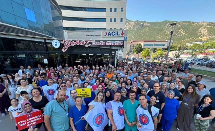 Denizli Pamukkale Üniversitesi (PAÜ) Hastanesinde görevli bir grup sağlık çalışanı, eşit çalışma şartları ve eşit ücret talebiyle 2 saatliğine 2’inci kez iş bırakma eylemi gerçekleştirdi.