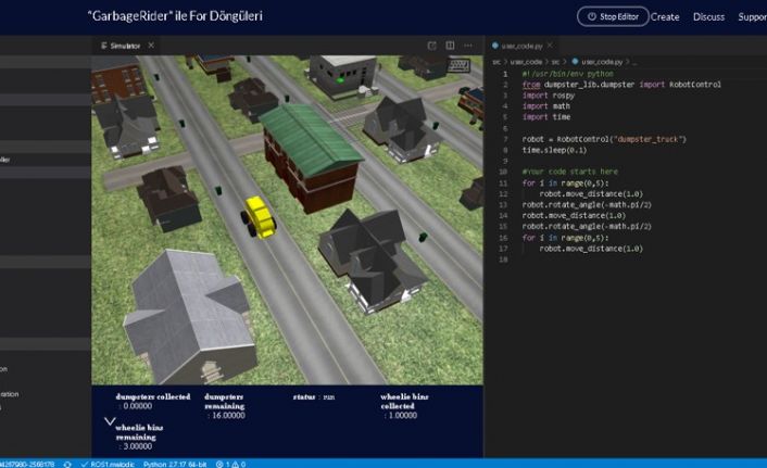 Online robotik eğitimine katılan öğrenciler, yazılım sektöründe en çok kullanılan programlama dillerinden biri olan Python dilini öğrendikleri için, ileride meslek hayatlarında karşılarına çıkabilecek endüstriyel robotik uygulamalarını canlı simülasyon ortamında deneyimleme imkanı buluyorlar.