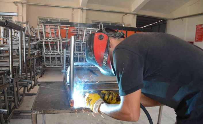 Şırnak’ın Silopi Mesleki ve Teknik Anadolu Lisesi öğrencileri, kentteki okulların sıra ve masa ihtiyacını karşılamak için tatil zamanlarında çalışıyorlar. Öğrenciler, masa ve sandalyeleri yeni eğitim öğretim dönemine yetiştirmek için harıl harıl çalışırken 3 milyon ciro elde etti.