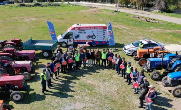 Manisa’nın Turgutlu ilçesinde traktör sürücüsü çiftçilere trafik semineri verildi.