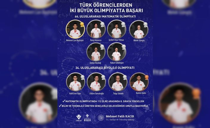 Sanayi ve Teknoloji Bakanı Mehmet Fatih Kacır, Türk öğrencilerin Uluslararası Matematik Olimpiyatı’nda 1 altın ve 5 gümüş, Uluslararası Biyoloji Olimpiyatı’nda ise 3 gümüş ve 1 bronz madalya kazandığını belirterek, “Öğrencilerimiz Uluslararası Matematik Olimpiyatı’nda tarihi bir başarıya imza atarak ülkemizi 112 ülke arasında 8. sıraya taşıdı. Böylece matematikte olimpiyat tarihimizdeki en iyi ikinci başarımızı kazandık. 34. Uluslararası Biyoloji Olimpiyatı’nda ise 3 gümüş, 1 bronz madalya alan öğrencilerimiz göğsümüzü kabarttı” dedi.