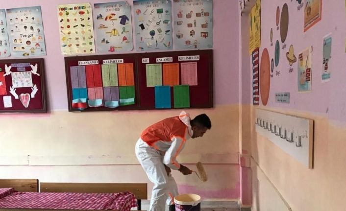 Batman’ın Gercüş ilçesinde 2 yıldır ücretli öğretmen olarak görev yapan Abdulkadir Yıldırım ve köy okulu müdürü Zeki aslan ile birlikte merkeze 42 kilometre uzaklıktaki görev yaptıkları köy okulunu boyayarak okulun çehresini değiştirdi.