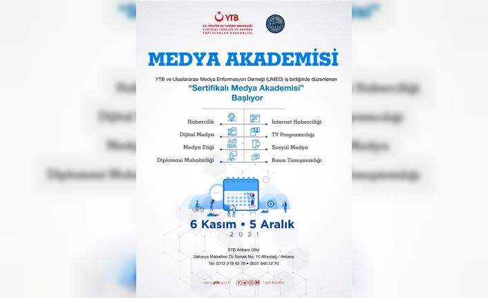Yurtdışı Türkler ve Akraba Topluluklar Başkanlığı (YTB) ve Uluslararası Medya Enformasyon Derneği (UMED) iş birliğinde Türkiye’de iletişim alanında eğitim alan uluslararası öğrencilere yönelik Medya Akademisi programı düzenleniyor. Programla genç iletişimciler alanında uzman isimlerden gazete, radyo, televizyon ve dijital medya alanlarında eğitimler alacak.