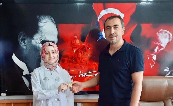 Osmancık’ta YKS sınavına katılan ve alanında ilçe birincisi olan Ömer Derindere Fen Lisesi öğrencisi Günseli Karabudak okul idaresi tarafından altın ile ödüllendirildi. Karabudak sayısal puan alanında 3 milyon 200 bin aday arasından yüzde 0,27 dilime girerek Türkiye genelinde 6 bin 337, ilçe bazında ise birinci oldu. Aldığı sonuçla hedeflediği Tıp Fakültesine girmeye hak kazanan Günseli Karabudak, Okul Müdürü Mustafa Yıldırım tarafından altın ile ödüllendirildi.