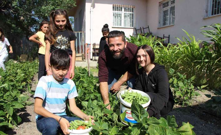 Öğrencileri Hilal Nur Gök ile Mehmet Emin Elmacı da öğretmenleri ve arkadaşlarıyla birlikte yaz tatilinde bahçede çalışarak sebzelerin üretimini öğretmekten mutluluk duyduklarını söylediler.