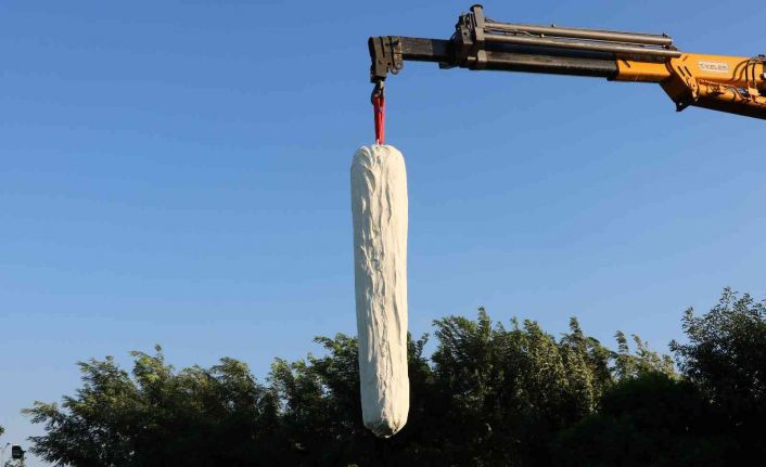 Yaklaşık 4 tonluk dev dondurma, tır yardımıyla Kervanhan Tesislerine getirildi. Tırın içinden onlarca personelin yardımıyla çıkarılan dondurma vince asılarak tesisin bahçesine indirildi. Dondurmayı elektrikli testere ve hızar makinası ile kesmeye çalışan çalışanlar, balta yardımıyla dondurmayı küçük dilimlere ayırdı.