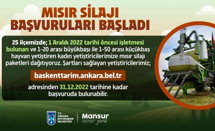 Ankara’nın 25 ilçesinde 1 aralık 2022 tarihi öncesinde işletmesi bulunan ve 1-20 arası büyükbaş ile 1-50 arası küçükbaş hayvanı bulunan kadın yetiştiricilere onar paket 500 kilogramlık silajlık mısır desteği verilecek.