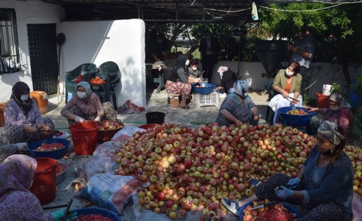 İzmir’in Aliağa ilçesinde başlayan nar hasadı ile birlikte elde edilen organik nar ekşisi yapımına başlandı.