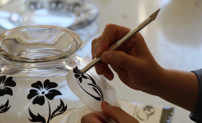 Mardin’de Halk Eğitim Merkezi Müdürlüğü bünyesinde üretilen altın yaldızlı cam ürünler yoğun ilgi görüyor.