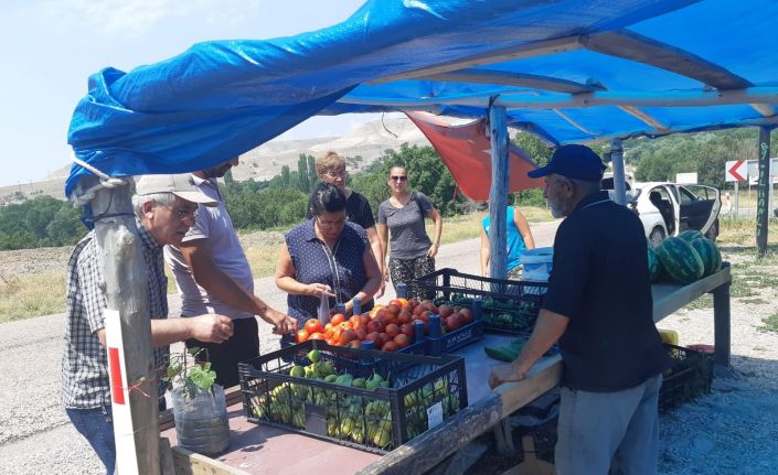 Kendi bahçesinde yetiştirdiği ürünleri yol kenarında satan Abdullah İlhan, “Çocukluğumdan beri bu işlerin içindeyim. Emekli olunca yine tarladaki işimizi devam ettirmeye çalışıyoruz. Bu seneki hasatlarımız biraz zayıf. Aşırı yağışlar her şeyi bitirdi. Bu ara gelen giden az, çünkü maliyetler yüksek olduğu için fiyatlar biraz yüksek. Vatandaşlar fiyatlar için marketlerle aynı diyor. Halbuki burası bir numaralı manav. Gelip icabında direkt bahçeden taze mal alabiliyorlar” diye konuştu.
