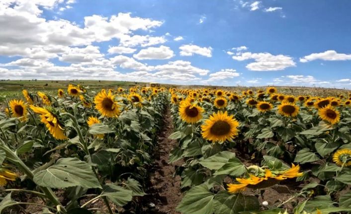 Çiçek açan ayçiçeği tarlaları görsel şölen oluştururken, bu sene ’çayır tırtılı’ görülmemesi üreticiyi sevindirdi.