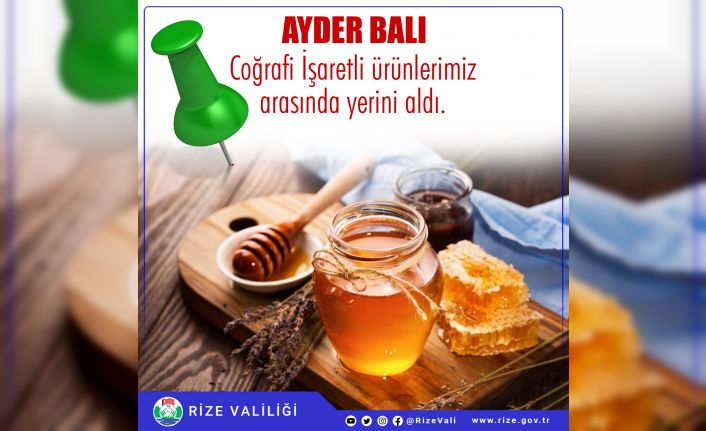 Çamlıhemşin ilçesine bağlı 1800- 2300 rakımları arasında yer alan Ayder Yaylası’nda üretilen Ayder balının coğrafi işaret tescili alması ile birlikte Rize, coğrafi işaret tescilli ürün sayısını 13’e çıkardı. 30 yıl önce kurulan Ayder Tarımsal Bal ve Turizm Kooperatifi tarafından 6 yıl önce Hacettepe Üniversitesi iş birliği ile yapılan çalışmalar sonucunda uluslararası bilimsel yayınlarla da Ayder balının ve poleninin değeri bilimsel olarak tescil edilmişti.