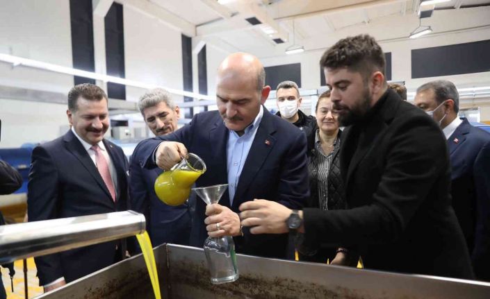 Fabrikada çalışan işçilerle sohbet etmeyi de ihmal etmeyen Soylu, zeytinlerin çeşitli aşamalardan geçerek, sıkılıp zeytinyağına dönüşmesini de birebir izledi. Zeytinin, şifa kaynağı zeytinyağı haline dönüşmesi sürecini adeta hayranlıkla izleyen Bakan Soylu, Halil Sucu’dan zeytinyağı alanında yaptıkları çalışmalar hakkında brifing aldı. Samimi bir atmosferde gerçekleşen ziyaretin ardından Emine Sucu ve Halil Sucu ile fabrika bahçesinde bulunan merhum Ahmet Sucu’ya ait dev pankart önünde hatıra fotoğrafı çektiren Bakan Soylu daha sonra fabrikadan ayrıldı. Bakan Soylu’yu Ayvalık’taki zeytinyağı fabrikasındaki ziyareti sırasında; İçişleri Bakan Yardımcısı Muhterem İnce, Balıkesir Valisi Hasan Şıldak, Balıkesir Büyükşehir Belediye Başkanı Yücel Yılmaz ve Ayvalık Kaymakamı Hasan Yaman yalnız bırakmadı.