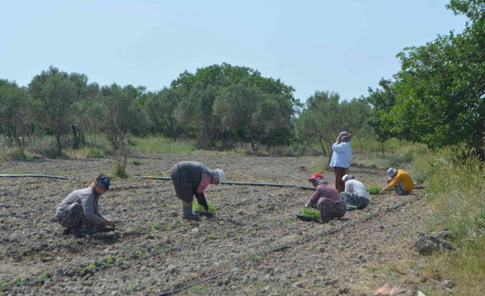 Balıkesir’in Ayvalık ilçesinde ‘şeker otu’ olarak da bilinen 50 bin stevya fidesi toprakla buluşturuldu.