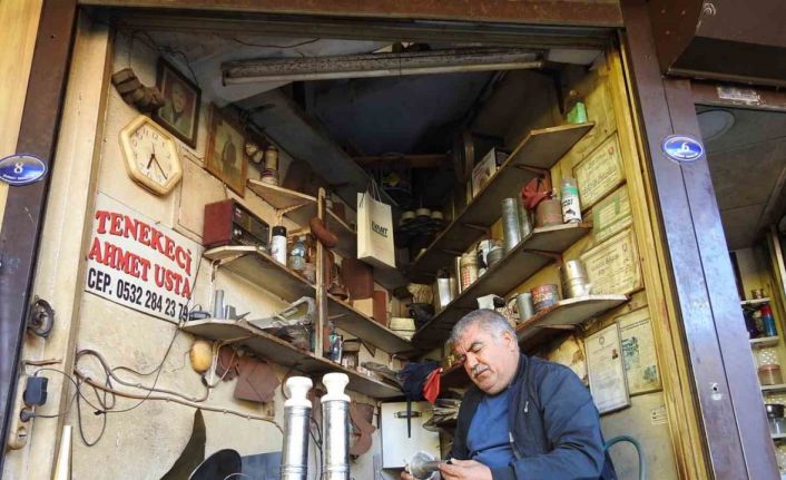 Gaziantep’te yaşayan Ahmet Telefoncu, yarım asırdır dedesinden babasına, babasından da kendisine kalan tenekecilik mesleğini bir buçuk metrekarelik dükkanında sürdürüyor.