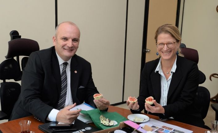 ABD Ankara Büyükelçiliği Tarım Müsteşarı Christine Strossman, Bursa’nın tarım alanında yapmış olduğu projeleri incelemek üzere Bursa’yı ziyaret ettiklerini belirterek, BTSO’ya ev sahipliğinden dolayı teşekkür etti. Bursa’nın Türkiye’nin tarım üretiminde stratejik bir öneme sahip olduğunu belirten Strossman, Bursalı incir üreticilerine müjdeli haberi verdi. Bursa siyah incirinin ihraç iznine dâir belgeleri Tarım ve Orman Bakanlığı’na gönderdiklerini belirten Strossman, “Türkiye’nin gerekli bilgileri iletmesinin ardından ABD’ye siyah incir ihracatı başlayabilir” dedi.