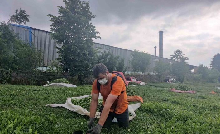 Trabzon’un Of ilçesine bağlı Pınaraltı Mahallesinde bulunan ÇAYKUR’a ait çay fabrikasının bacasından çıkan kömür tozu çay bahçelerine yağıyor.