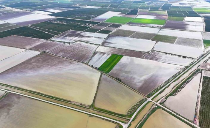 Adana’da son 3 gündür etkili olan sağanak yağış, Yüreğir ilçesinde tarım arazilerini sular altında bıraktı. Dron ile havadan görüntülenen bölgede mısır, karpuz ve kavun başta olmak üzere birçok ürün zarar gördü.