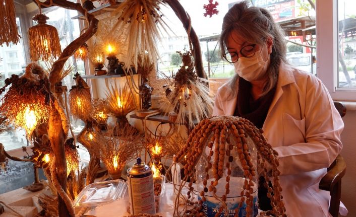 Balıkesir’in Edremit ilçesinde yaklaşık 26 yıllık devlet memurluğunun ardından emekli olan Funda Zektaş, ağaç dalları ve köklerini evinden kurduğu atölyede el emeği ile dekoratif aydınlatma sistemlerine dönüştürüyor.