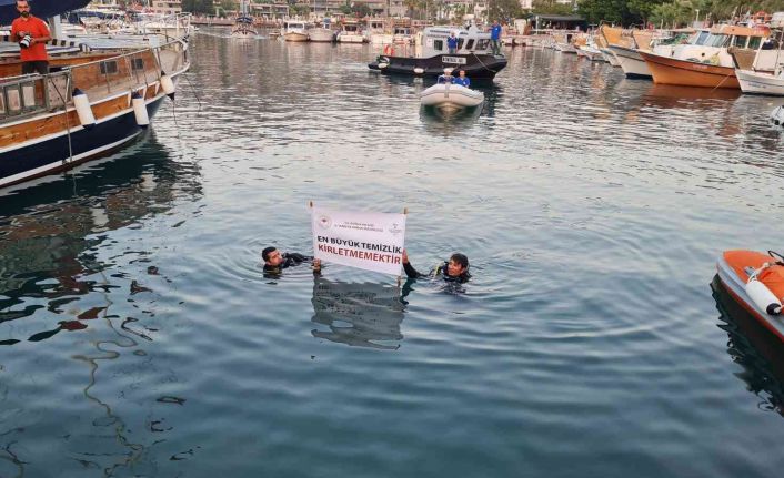 Barınakta temizlik yapan dalgıçların denizde "En büyük temizlik kirletmemektir" yazılı pankart açtığı programda katılımcılar, balıkçılıkla ilgili fotoğrafların yer aldığı sergiyi gezdi.