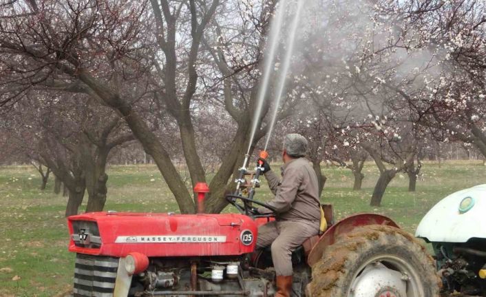 Domur ve çiçek monilyası ilaçlamalarını sürdüren kayısı üreticileri depremde büyük yıkım yaşayan Malatya’nın tekrar ayağa kalkmasında kayısının önemli bir araç olacağı görüşünde.