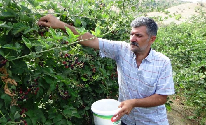 Devlet desteğiyle ekilen böğürtlen bahçelerinde başlayan hasat çiftçinin yüzünü güldürdü
