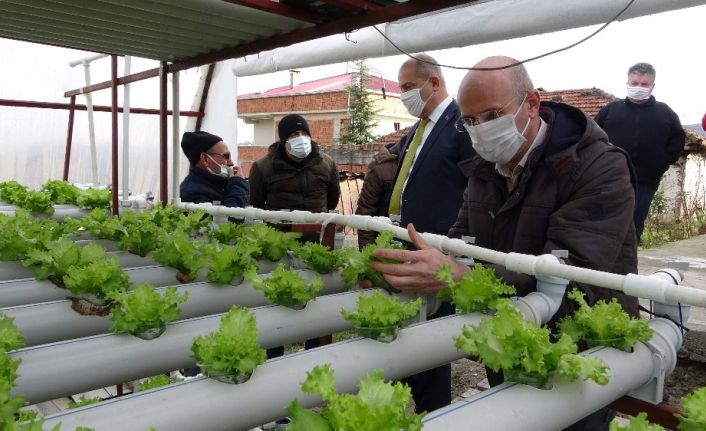 Trabzon’da son yıllarda topraksız tarıma yönelik çalışmaların hız kesmeden sürdüğünü bu anlamda bakanlık olarak desteklerin sürdüğünü hatırlatan Gülbay, “Pandemi döneminde insanlarımız örtü altı yetiştiriciliğe biraz daha heves ederek önem veriyor. Topraksız tarım yani; daha küçük alandan farklı bir sistemle daha fazla ürün etme yoluna gidiliyor. Bunun bir tek farkı, her şeyi kontrollü. Yani pimaşların içerisindeki suyun dolandırılmasıyla bitkinin alacağı bütün besinler ve ihtiyacı olan minareller bu düzenle sistemli bir şekilde yapılıyor. Dolayısıyla üreticiler küçük bir alanda güzel bir gelir elde edecek” diye konuştu.