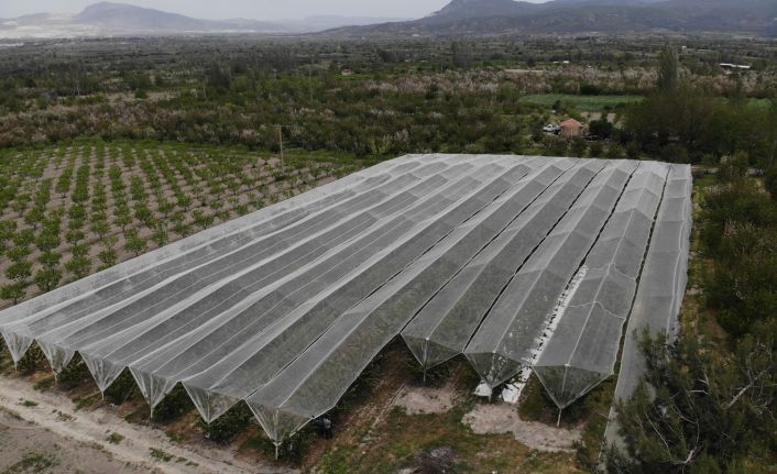 Denizli’de dolu nedeniyle geçen sene kirazları zarar gören çiftçi, 4 dönümlük arazisinin üstüne file çekerek dolu zararının önüne geçti. Bölgede ilk defa bir tarlaya dolu filesi çekilirken, çiftçi bu sene yağan dolu sonrası kendi ürünlerinin hiçbir şekilde etkilenemediğini belirtti.