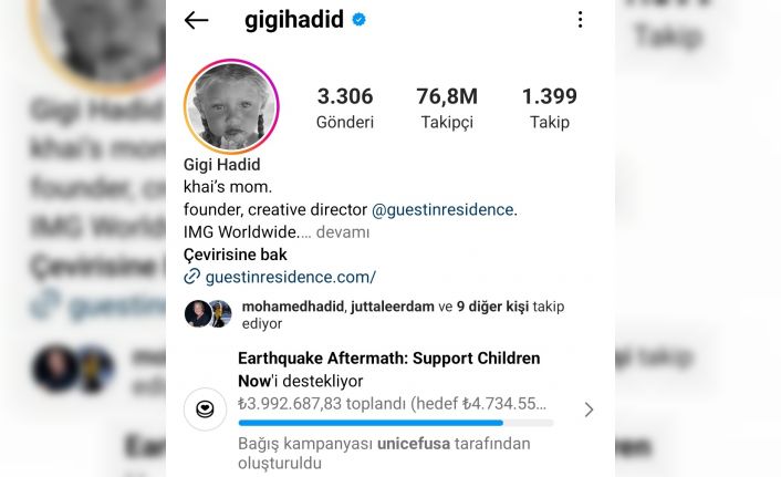 Filistin kökenli gayrimenkul geliştiricisi Mohammed Hadid ile model kızları Gigi ve Bella Hadid Türkiye’ye destek olabilmek için sosyal medya hesaplarından takipçilerine Kahramanmaraş ve 10 ili kapsayan depremzedelere yardım edebilmek için çağrıda bulundular. Gigi, sosyal medya hesabından UNİCEF ile ortaklaşa başlattığı yardım kampanyasıyla depremzedeler için 4 milyon TL bağış topladı. Ünlü yıldızlar takipçilerini Türkiye’deki depremzedeler için yardıma davet etti