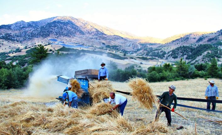 Kahramanmaraş’ta çiftçiler hem teknolojik hem de geleneksel tarım aletlerini kullanarak hasada başladı.