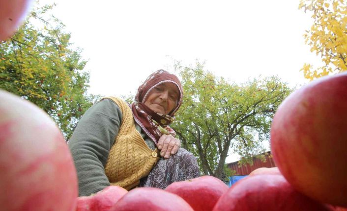 Eşinin topladığı elmaları itinayla sandıklara yerleştiren Aliye Günday ise, “Biz doğduk büyüdük köydeyiz. Meyvemiz, tarlalarımız vardı. Babam bize bunlarla baktı. 64 yıldır evliyim. Geldim geleli tarlaları biçer, elmaları toplar satarız, akrabalarımıza dağıtırız” dedi.