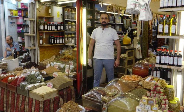 Hatay yöresine ait baharatların yeni mahsulün yapılmasıyla birlikte satışlarının arttığını ifade eden baharat satıcısı Evren Eraslan, “Samandağ biber salçalarımız, pul biberlerimiz, yerli sumak, kan dut şurupları, kuru domates ve biberler genellikle bu aylarda yeni mahsulleri beklenir. En taze ve en doğal halleriyle müşterilerimiz gerek buraya gelebilenler buradan yerinden alır” dedi.