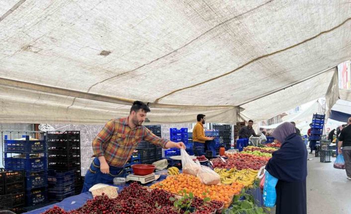 Meyve fiyatlarında sabitlenme olduğunu vurgulayan pazarcı Ekrem Tapar, “Meyvelerin ilk çıktığın günlere göre tabi biraz geriledi. Fakat şu anda tam olarak fiyatlar oturmuş durumda değil. Erik 30 TL, kiraz 35 TL, çilek 35 TL, şeftali - nektarin 35 TL’de satıyoruz. Bu fiyatlar, hasat zamanı tam olmadığı için biraz yüksek. İlerleyen günlerde fiyatlar düşer. Talep en çok erik ve kiraza var” ifadelerini kullandı.