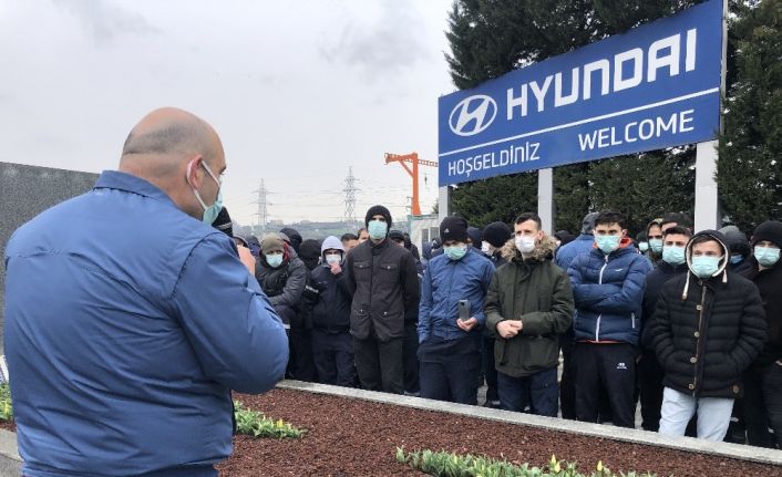 Kocaeli’de bulunan Hyundai Assan fabrikasında yapılan toplu sözleşme görüşmelerinde teklif edilen yüzde 14’lük zammı kabul etmeyen işçiler, mesai sonunda servis araçlarına binmeyerek fabrika girişinde eylem yaptı.
