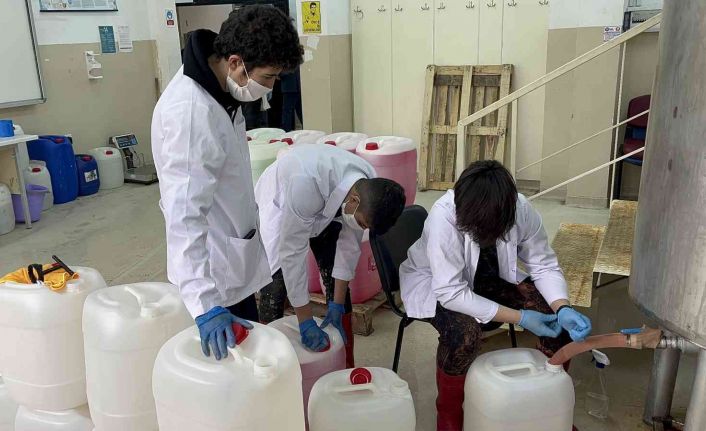 Isparta’da öğrenciler tarafından hammaddeler üretildikten sonra bidonlara dolduruluyor. Ardından özel teknikler uygulanarak dezenfektan ve kolonya elde ediliyor. Özenle şişelere doldurulan dezenfektan ve kolonyalar, etiketlenerek satışa sunuluyor. Korona virüs salgını değişen varyantları ile birlikte devam ediyor. Salgınla mücadelede ise hijyen ise büyük önem taşıyor.