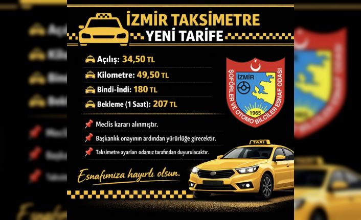 İzmir Büyükşehir Belediyesi meclisi tarafından kentte uygulanacak yeni taksimetre ücret tarifesi kabul edildi. Karara göre taksilerde bindi indi ücreti 180 liraya yükseldi.