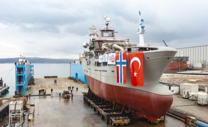 Denize indirilmesinin ardından özel tersanenin rıhtımlarına bağlanan geminin çalışmaları devam edecek.