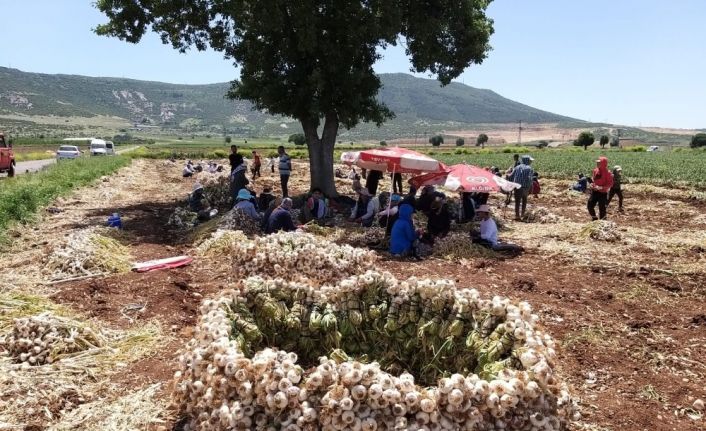 Kahramanmaraş’ta hasadına başlanan sarımsağın tarlada 15 liraya alıcı bulması çiftçinin yüzünü güldürdü.