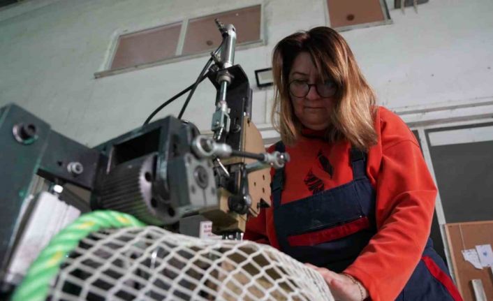 Tokat’ta kurduğu atölyede balık üretim kafesleri için ağ hazırlayan girişimci kadın, barajlarda yetiştirilen somonların Karadeniz üzerinden dünya sofralarına ulaşmasına katkı sağlıyor.