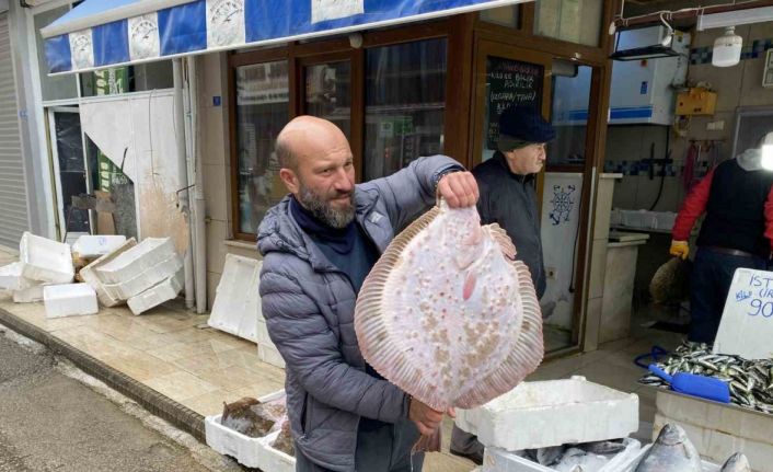 Karadeniz’de avlanan 8 kiloluk kalkan balığı 5 bin liraya satıldı