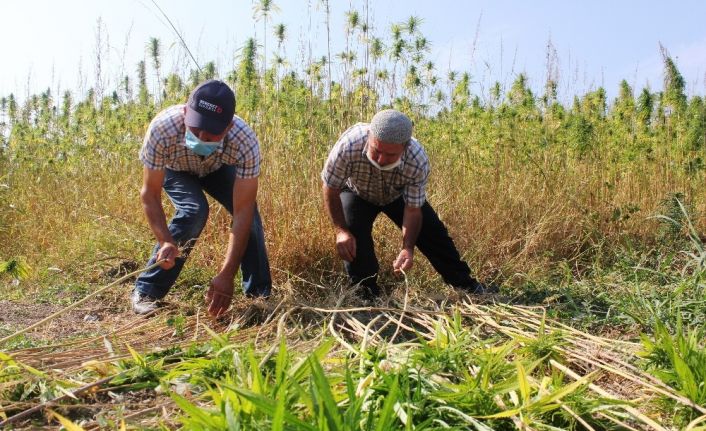 Mart ayında ekilen kenevirin boyunun yaklaşık 6 metreye ulaşması ile birlikte hasadı yapılmaya başladı.