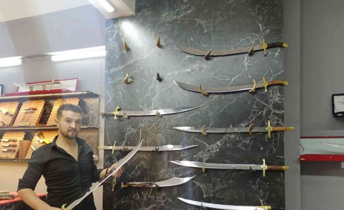 Kahramanmaraşlı bıçakçının geyik, koç ve manda boynuzundan yaptığı kılıç ve bıçaklar yurt dışından da talep görüyor.