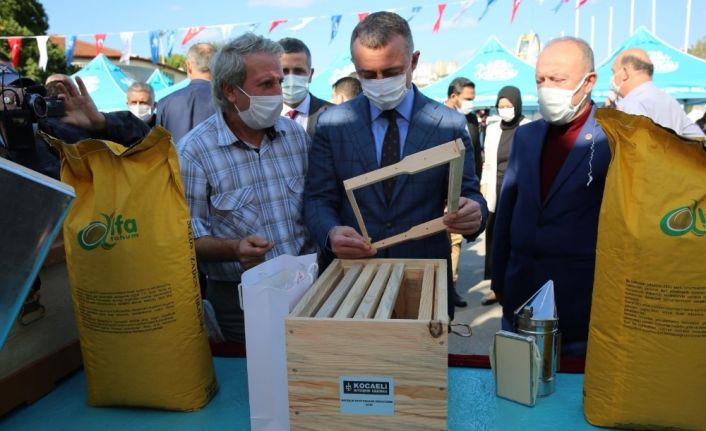 Kocaeli çiftçisinin ekonomik kalkınması ve kentten köye dönüşün gerçekleşmesini sağlamak için somut adımlar atan Kocaeli Büyükşehir Belediyesi, önemli bir projeyi daha hayata geçirdi. Büyükşehir Muhtarlık İşleri Dairesi Başkanlığı tarafından Kocaeli Fuarı’nda gerçekleştirilen törenle yüzde 50 hibeli binlerce arı kovanı ve arıcılık ekipmanı Kocaeli çiftçisine verildi. Programa Kocaeli Büyükşehir Belediye Başkanı Tahir Büyükakın’ın yanı sıra AK Parti Kocaeli İl Başkanı Mehmet Ellibeş, MHP Kocaeli İl Başkanı Aydın Ünlü, kaymakamlar, ilçe belediye başkanları, Kocaeli Tarım İl Müdürü Yüksel Çil, Kocaeli İli Arı Yetiştiricileri Birliği Başkanı Hüseyin Yılmaz ve çok sayıda arı yetiştiricisi katıldı.