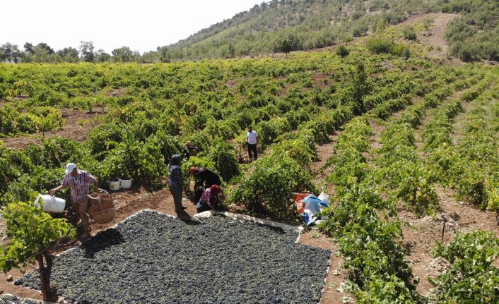 Konya’nın Bozkır ilçesinde bahar aylarında budanan ve 9 ay boyunca bakımı yapılan üzüm bağlarında hasat başladı. Bağından tek tek toplanan üzümler, hem kurutularak hem de pekmez olarak pazara sunuluyor.
