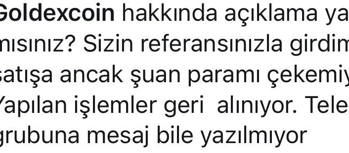 Kripto para alım satım platformu Goldexco.in konuyla ilgili internet sitesinde yayınladığı açıklamada, mükerrer işlemleri ve sistemsel problemleri neden göstererek giderici çalışmaların başlatıldığını ve herhangi bir kaybın söz konusu olmadığını bildirdi.