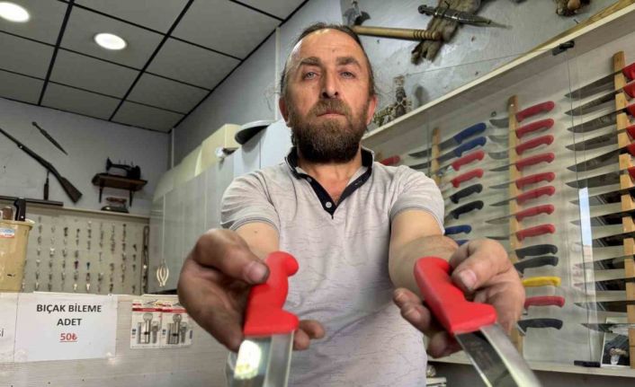 Evlerde kullanılan eski bıçakların da bilenmesi gerektiğini dile getiren Özkurt, "Bileme işini biz sulu bir şekilde yapıyoruz. Bıçağı yakmadan, zarar vermeden yapıyoruz. İlk alındığı gibi aynı keskinlikte müşterilerimize bıçakları teslim ediyoruz. Kurban hayvanlarının kafa kesme bıçağı ayrı, yüzme bıçağı ayrı, sıyırma bıçağı ayrı, parçalama bıçağı ayrıdır. Tek bıçak ile bütün işi yapılmaz. Çok profesyonel olan insanlar bile tek bıçak ile bütün işi yapmazlar. Deri yüzme bıçağı ayrı sıyırma bıçağı ayrıdır. Tek bıçak ile kesim yapmak sağlıklı değildir. Sıyırma bıçağı ile yapılan iş doğrama işini yapamaz. Her bıçağı kendi alanında kullanırsak daha sağlıklı iş yapmış oluruz daha randımanlı iş yapılmış olur" şeklinde konuştu.
