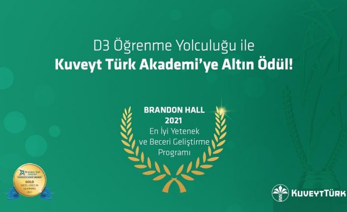 Dünyanın en prestijli danışmanlık şirketlerinden biri olan Brandon Hall tarafından düzenlenen Öğrenmede Mükemmellik Ödülleri 2021’de, Kuveyt Türk Akademi, Teftiş Kuruluna alınan müfettiş yardımcılarına yönelik düzenlediği ‘Denetim, Danışmanlık, Dönüşüm (D3)’ programıyla altın ödüle layık görüldü.