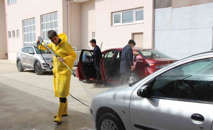 Araç sahiplerinin ikram edilen kahvelerini içerken işlemlere hızla başlandığını anlatan okul müdürü Niyazi Şişik, “Araçlarımızın iç, dış yıkanmasının bedelini 50 TL olarak belirledik. Ayrıca bakım işleminin maliyetini, öğrencilerimizin ve öğretmenlerimizin kazancını hesaplayarak fiyatı belirliyoruz” diye konuştu.